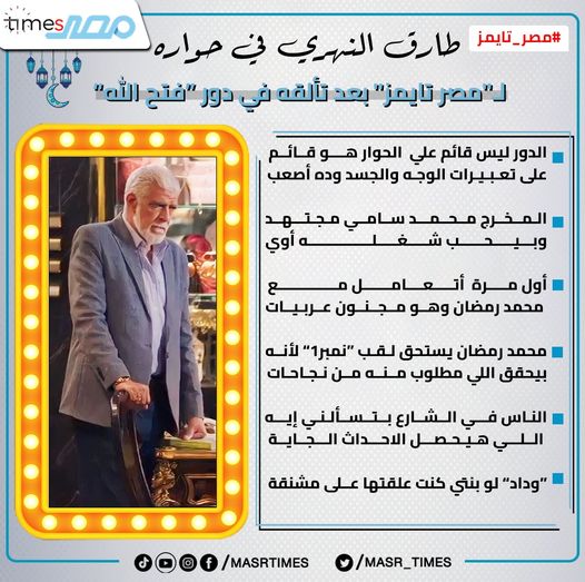 طارق النهري في حوار لـ"مصر تايمز": "فتح الله" مش بيتكلم أكتر ماهو بيعبر بوشه.. أول مرة أتعامل مع محمد رمضان وهو مجنون عربيات.. ويستحق لقب "نمبر1".. المخرج محمد سامي محرقش أحداث المسلسل