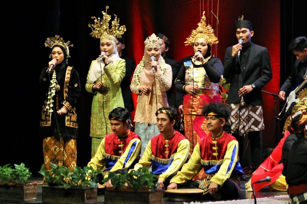 بعدها بدا برنامج الحفل بايات من القران الكريم تلاها فيلم تسجيلى عن اندونيسيا وبطابع يحمل الروح الاسلامية الممزوجة بالتقاليد الاسيوية تم تقديم عدد من الرقصات الشعبية التقليدية من مختلف انحاء البلاد كان منها راباي، فانكي بابوا، باتين كيمونين، كيجاك الى جانب مجموعة من الأناشيد الدينية والأغاني الفلكلورية التي تعبر عن ملامح التراث الفنى للبلاد.