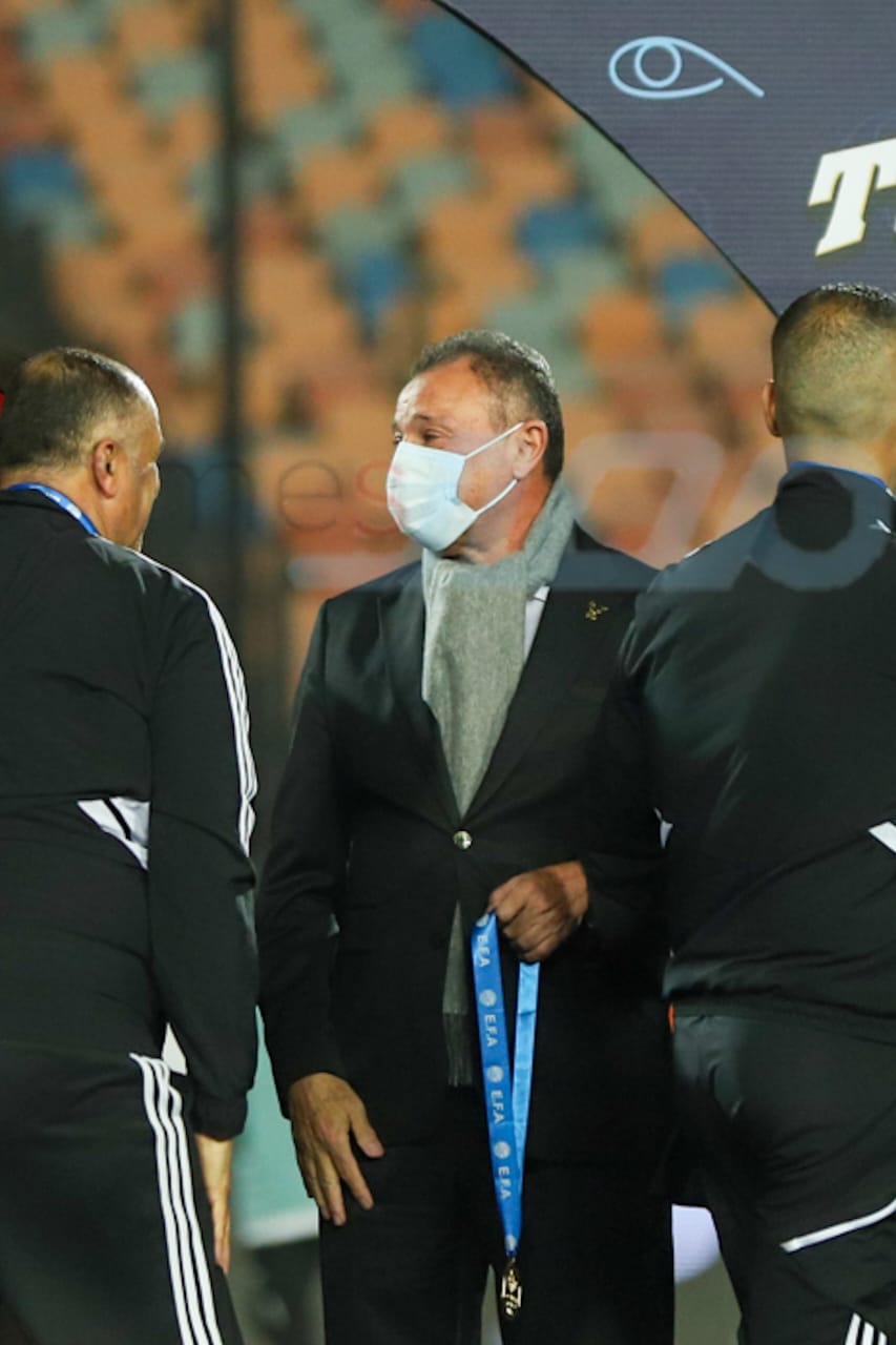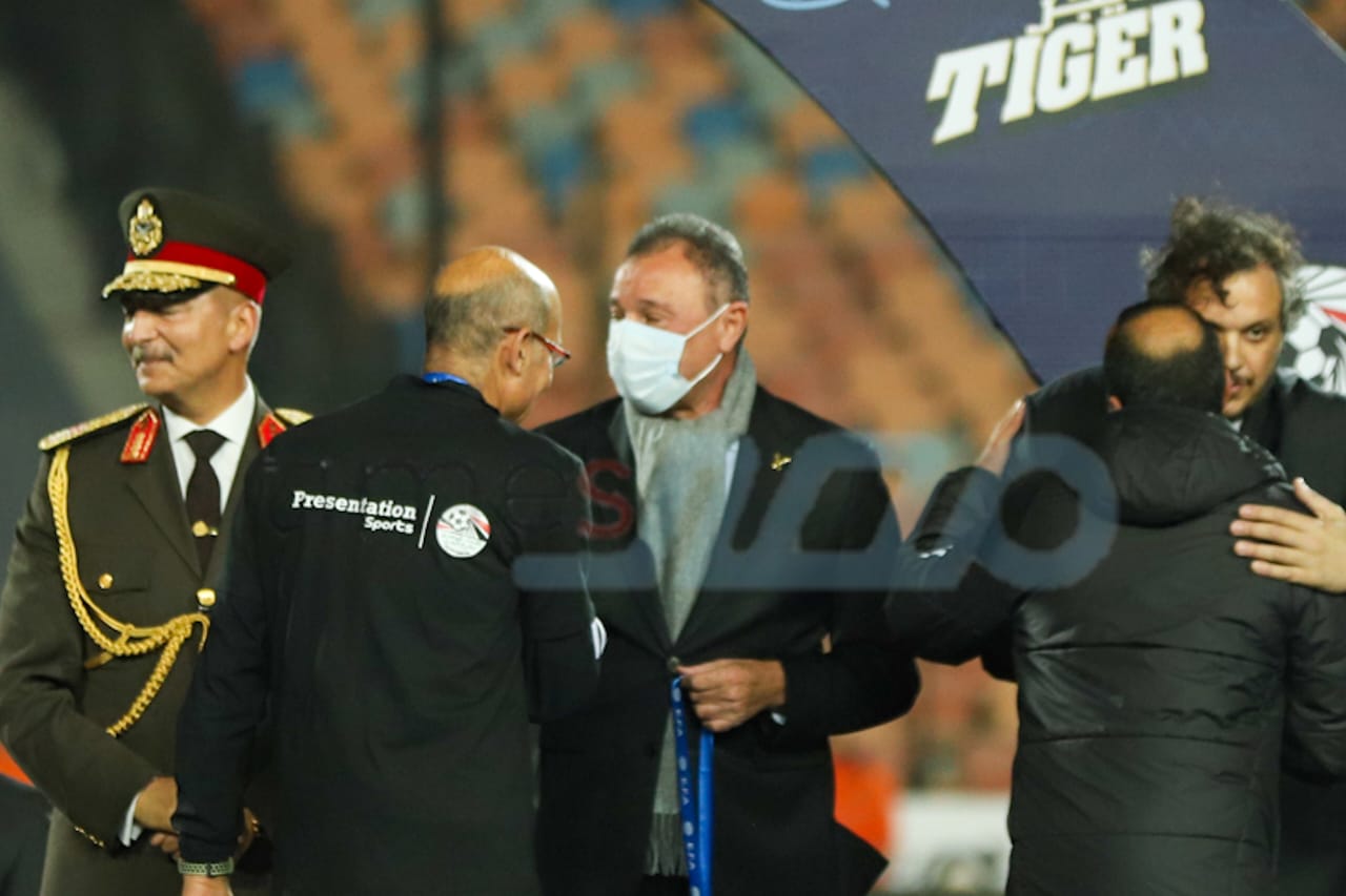 بكمامة ووجه شاحب.. الخطيب يظهر لأول مرة منذ مرضه ويشارك فى تتويج الاهلي