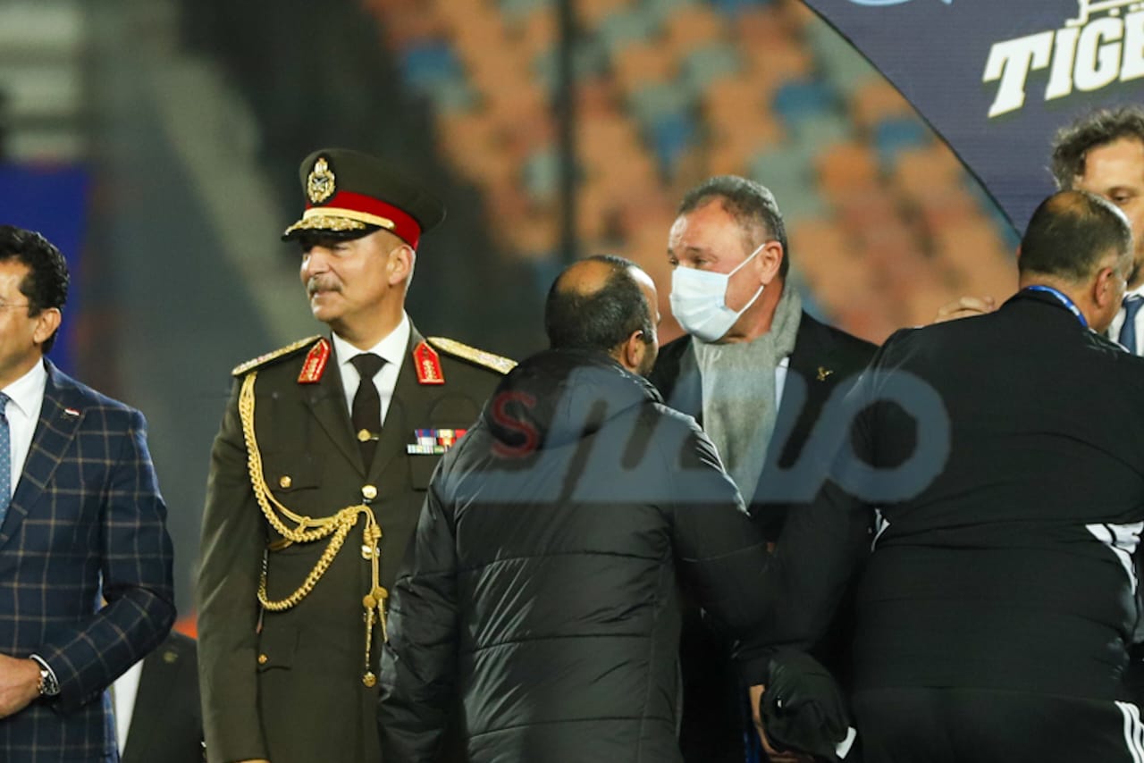 بكمامة ووجه شاحب.. الخطيب يظهر لاول مرة منذ مرضه ويشارك فى تتويج الاهلى