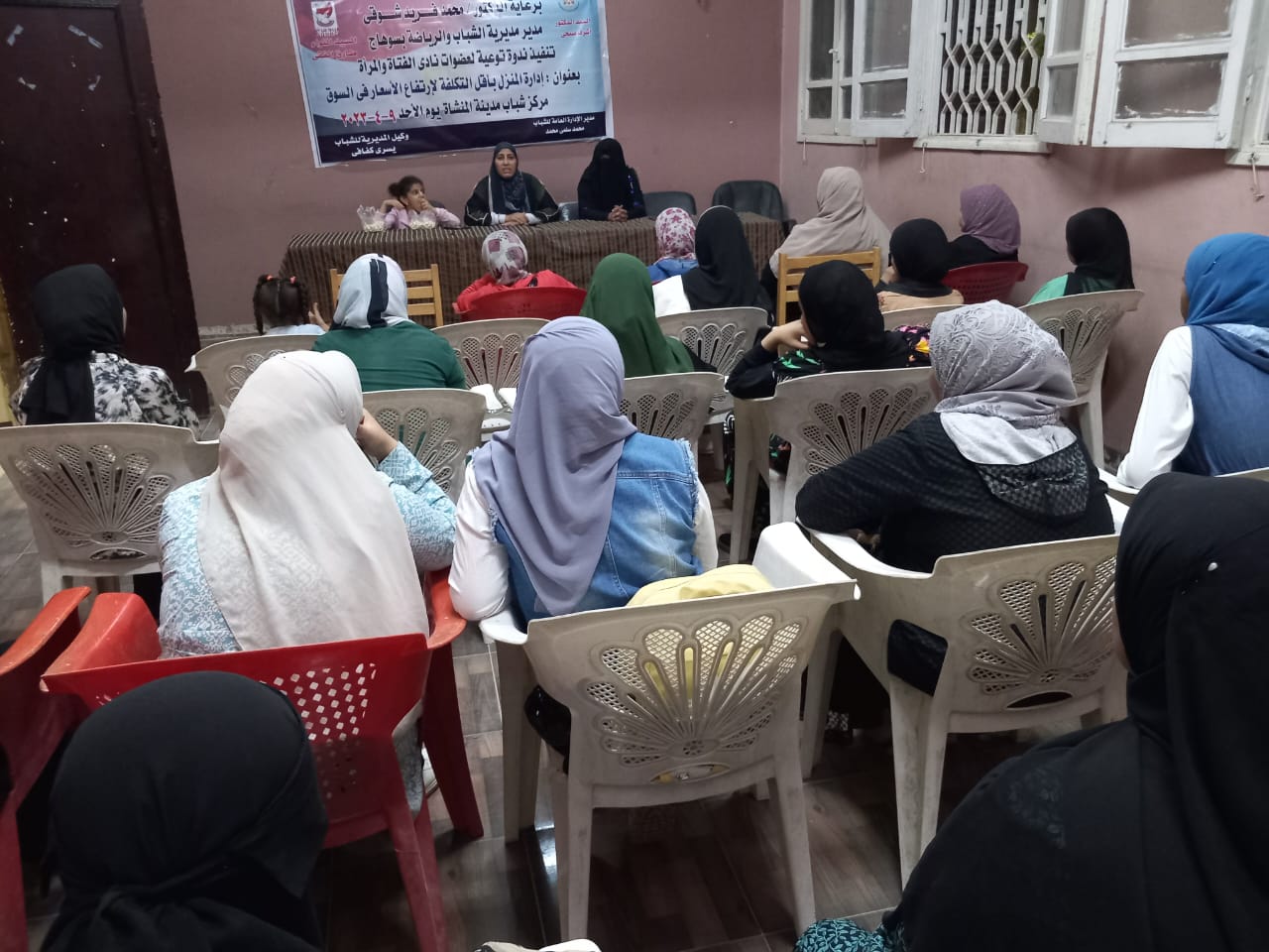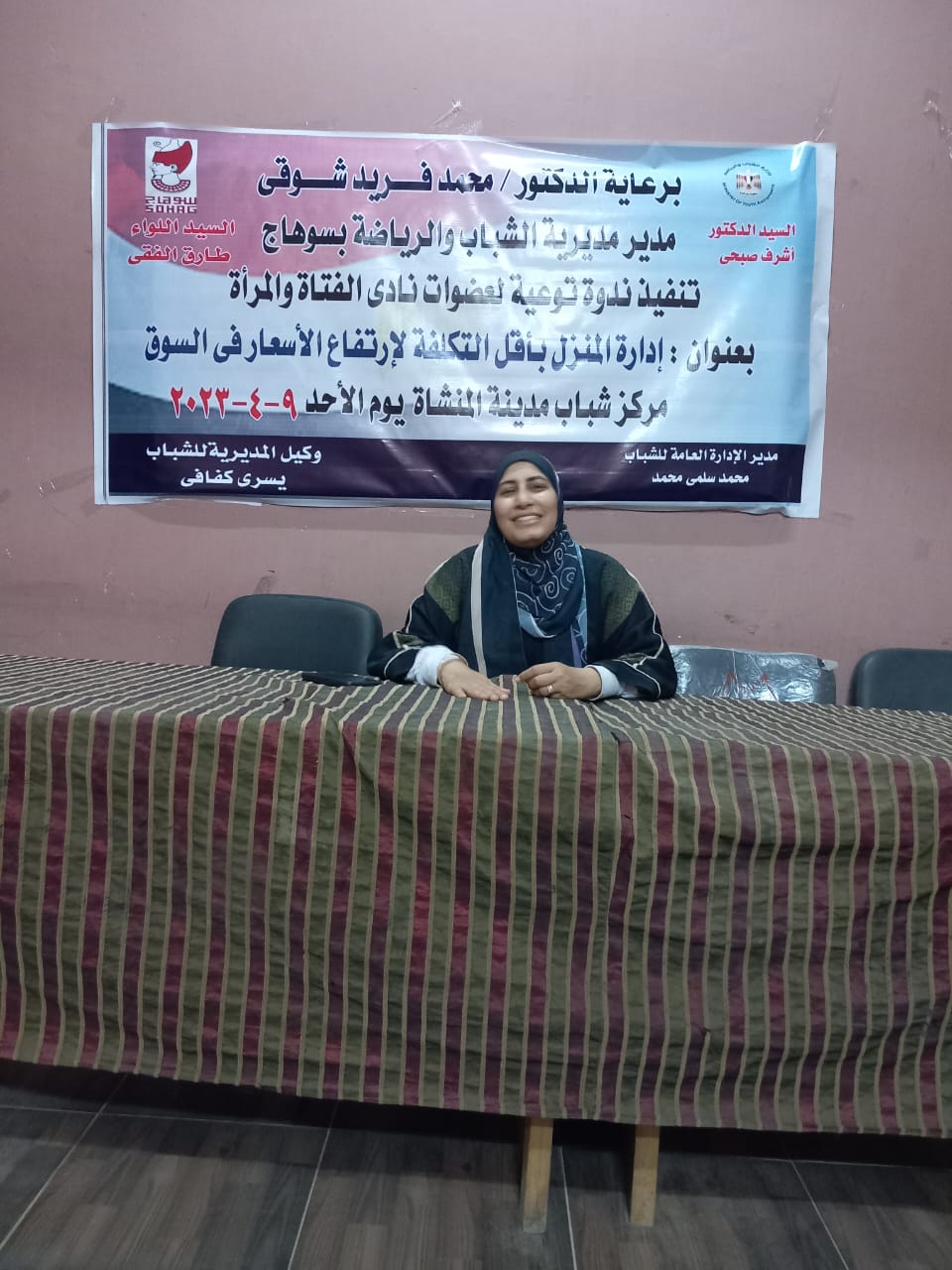 كما تم تنفيذ ندوة بمركز شباب مدينة المنشاه بمحافظة سوهاج بعنوان "ادارة المنزل بأقل التكاليف " ، وحاضر فيها صفاء حسن محمود - مدرسة اقتصاد منزلي، و تناولت فيها الطرق التي تُساهم في تدبير الشؤون المالية للمنزل بفعالية من خلال وضع خطة مدروسة للميزانية ومشاركة أفراد الأسرة في تقديم الأفكار والاقتراحات، كذلك التركيز على توفير الحاجات الأساسية والتي تمثل أولويات الأسرة وترتيب لهذه الأولويات وتنظيم الإحتياجات والمتطلبات.