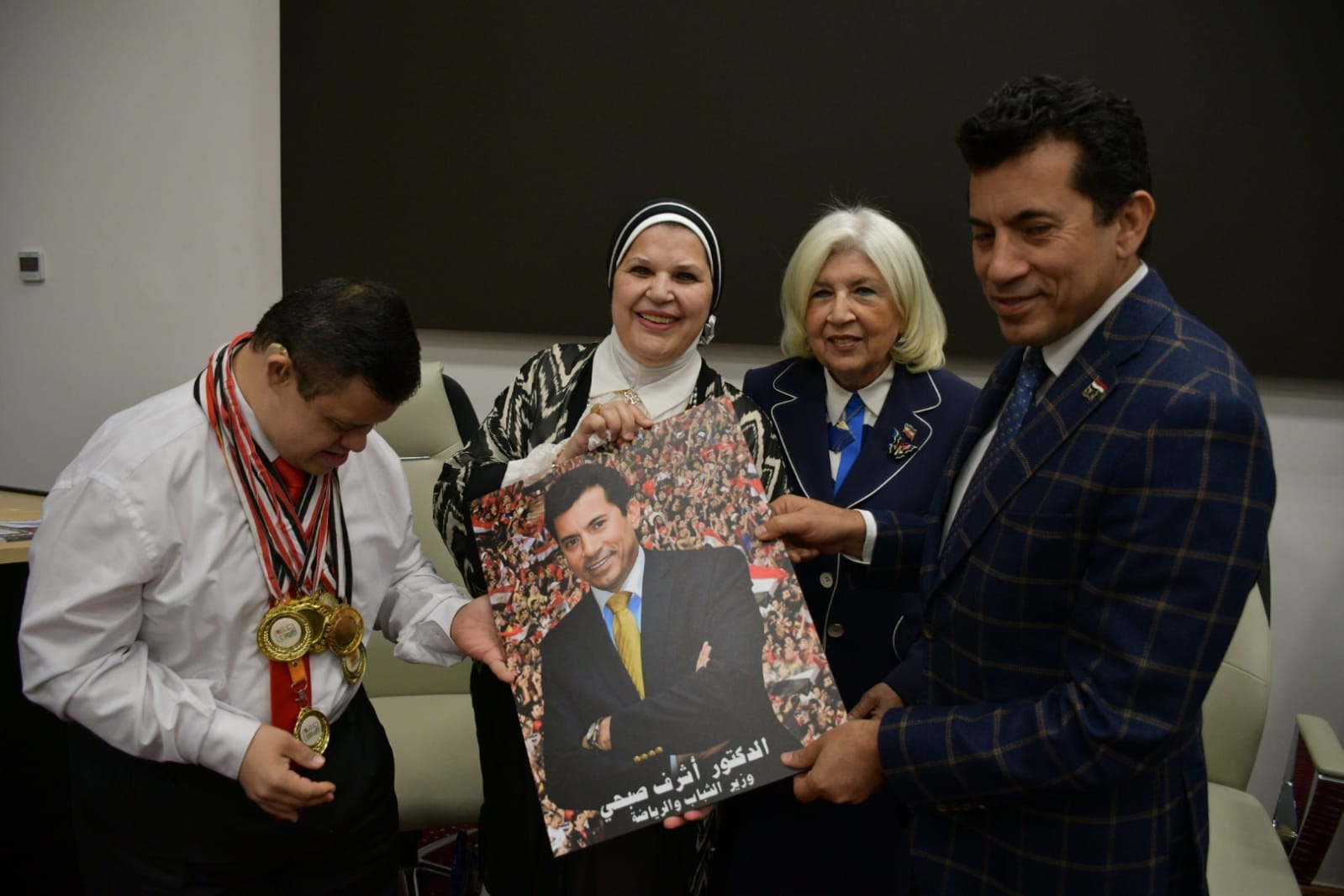 وخلال كلمتها، قدمت السفيرة سناء زايد سفيرة النوايا الحسنة وحفيدة الزعيم عمر مكرم، الشكر والتقدير لوزارة الشباب والرياضة علي احتضانها لذوي الهمم والقدرات، ودمجهم في مختلف المجالات والأحداث والفعاليات والبرامج والأنشطة الخاصة بالوزارة بالتنسيق والتعاون مع مختلف الجهات والمؤسسات المعنية.