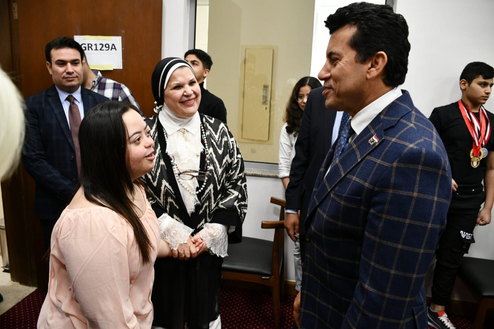 وتحدث الوزير عن توجيهات الرئيس عبدالفتاح السيسي بتيسير إجراءات دمج ذوى الهمم في المجالات الشبابية والرياضية، وتذليل أي عقبات تواجههم، تنفيذًا للتوجيهات الرئاسية برعاية وتأهيل ذوي الاحتياجات الخاصة وتلبية متطلباتهم وتوفير وتغعيل كافة حقوقهم، لافتًا إلي مكتب ذوي الهمم والقدرات بالوزارة الذي يعمل على تأهيل ذوى القدرات والهمم ليكونوا أعضاء فاعلين داخل المجتمع، مع إتاحة الفرصة أمامهم للمشاركة في مختلف الأنشطة الثقافية والفنية والترفيهية والرياضية، كما قمنا بتدشين مكتب شباب يدير شباب لذوى الهمم للتعاون خدمة لتلك الشريحة.
