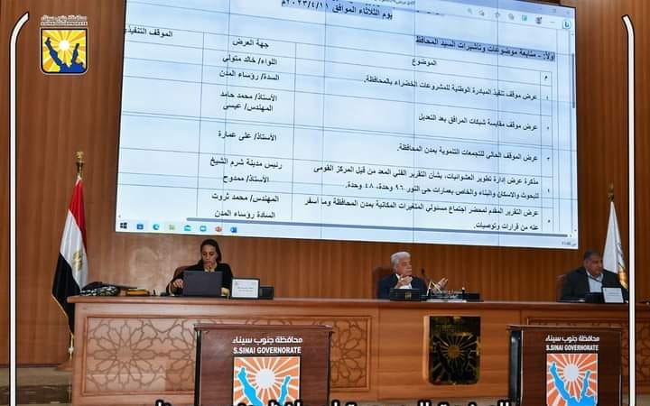 وتابع المحافظ موقف ساحات الإنتظار الذكية بشرم الشيخ، وتم مناقشة موقف تأشيرات الحج بالمحافظة، وتم عرض موقف الأراضي المطلوب تخصيصها من وزارة التنمية المحلية