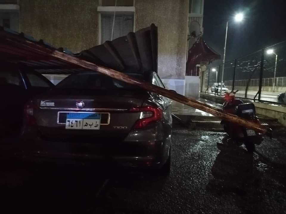 كما شهدت منطقة مسجد التوحيد نطاق مدينة بورفؤاد، حادث سقوط مظلة معدنية بجراج سيارات خاص داخل سور مساكن المعاشات، وذلك بسبب سوء الاحوال الجوية، وتسبب في خسائر بالسيارات، ولم يتعرض مواطن للإصابة.