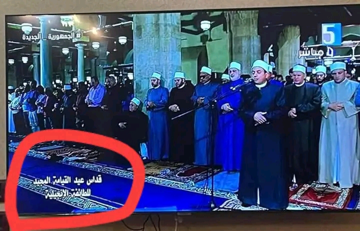 وانتشرت صورة عبر مواقع التواصل الاجتماعي، تظهر صلاة التراويح في أحد المساجد على شاشة القناة الخامسة، مع تعليق خاطئ خاصة بقداس القيامة، أثار الجدل.