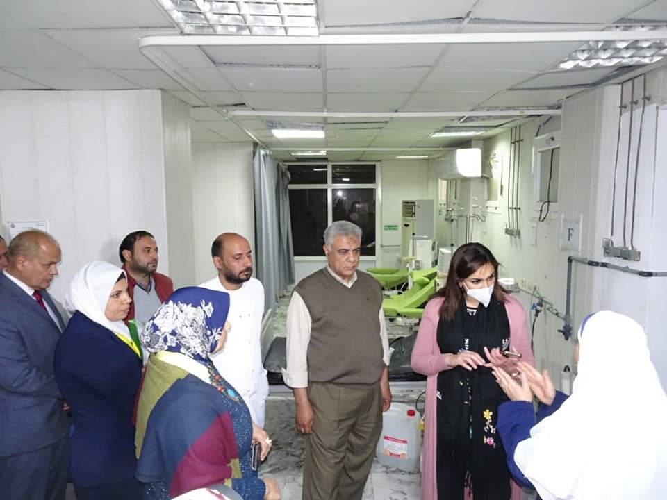 حيث تفقدت نائب محافظ البحيرة أقسام المستشفى المختلفة وتابعت إنتظام سير العمل بالاستقبال ووحدة الكلى وقسم الحضانات.