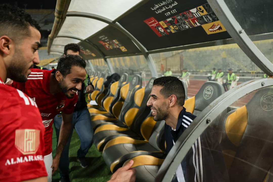 كهربا وعدد من لاعبي الاهلي يرحبون بمؤمن زكريا على دكة سموحة