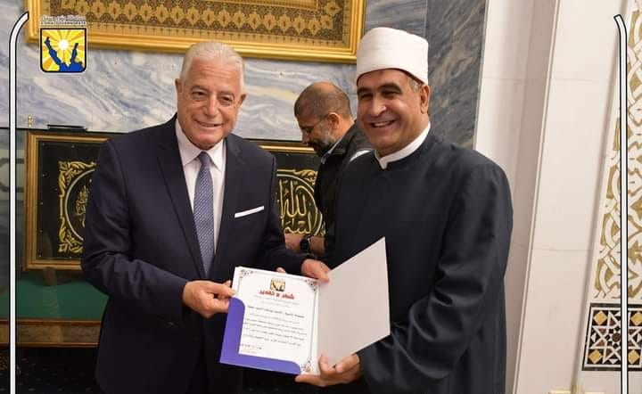 الشيخ حسين محمود محمد مدير شئون القرآن بالمحافظة والشيخ إسماعيل الراوي مستشار المحافظ لشئون المساجد.