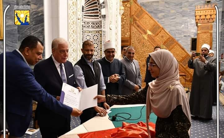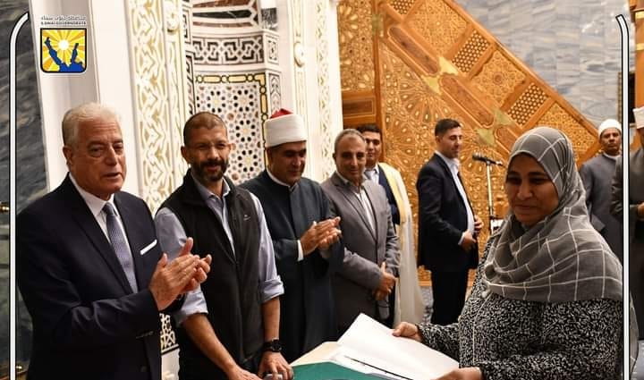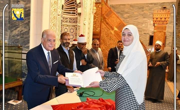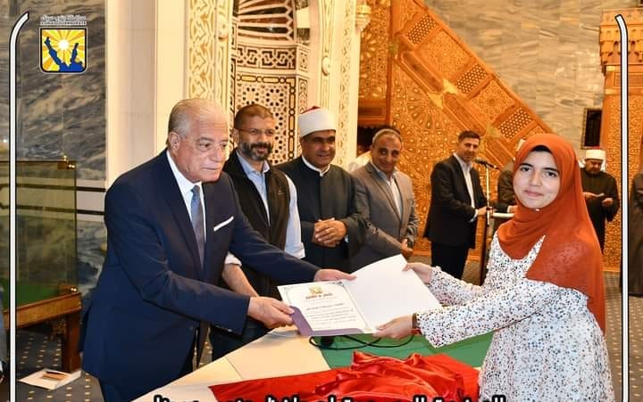 وجاء المكرمين كالتالي، ياسر حافظ عبد الرحمن محمد القرآن الكريم كاملاقمر ابو زيد قاسم القران الكريم كاملا عبير صابرين المتولي العيسوي القران الكريم كاملا والتي فازت بهدية المحافظ رحلة عمرة بعد إجراء قرعة علنية امام الحضور نهى ضياء الدين ابراهيم القران الكريم كاملا ناصر محمد رمضان القران الكريم كاملا، أروى السيد محمود شرف نصف القرآن الكريم، مريم عادل حامد علي نصف القرآن الكريم، عبد الرحمن بسام محمد نصف القرآن الكريم، أما بالنسبة لحفظ 10 أجزاء من القرآن فهم ساره ممدوح عبد الخالق اروى صلاح حسين علي.