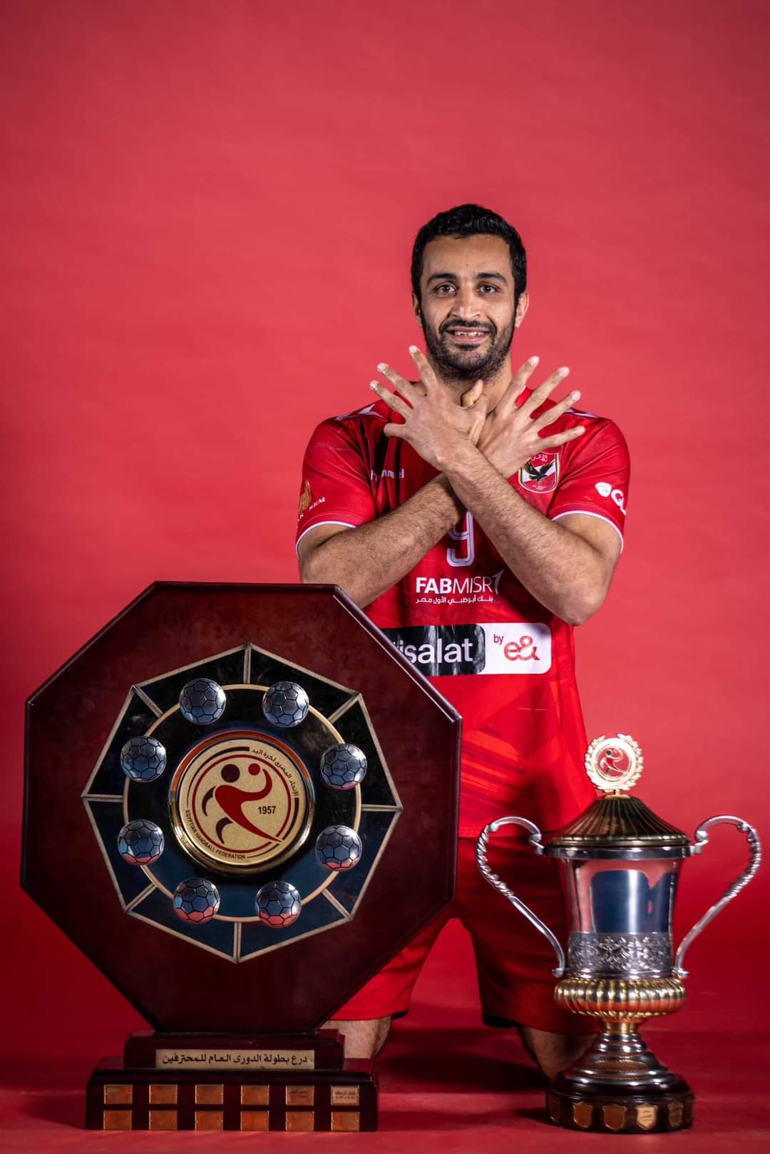 حرص الفريق الأول لكرة اليد رجال بالنادي الأهلي على التقاط صورة تذكارية بالثانية المحلية الدوري و كأس مصر.