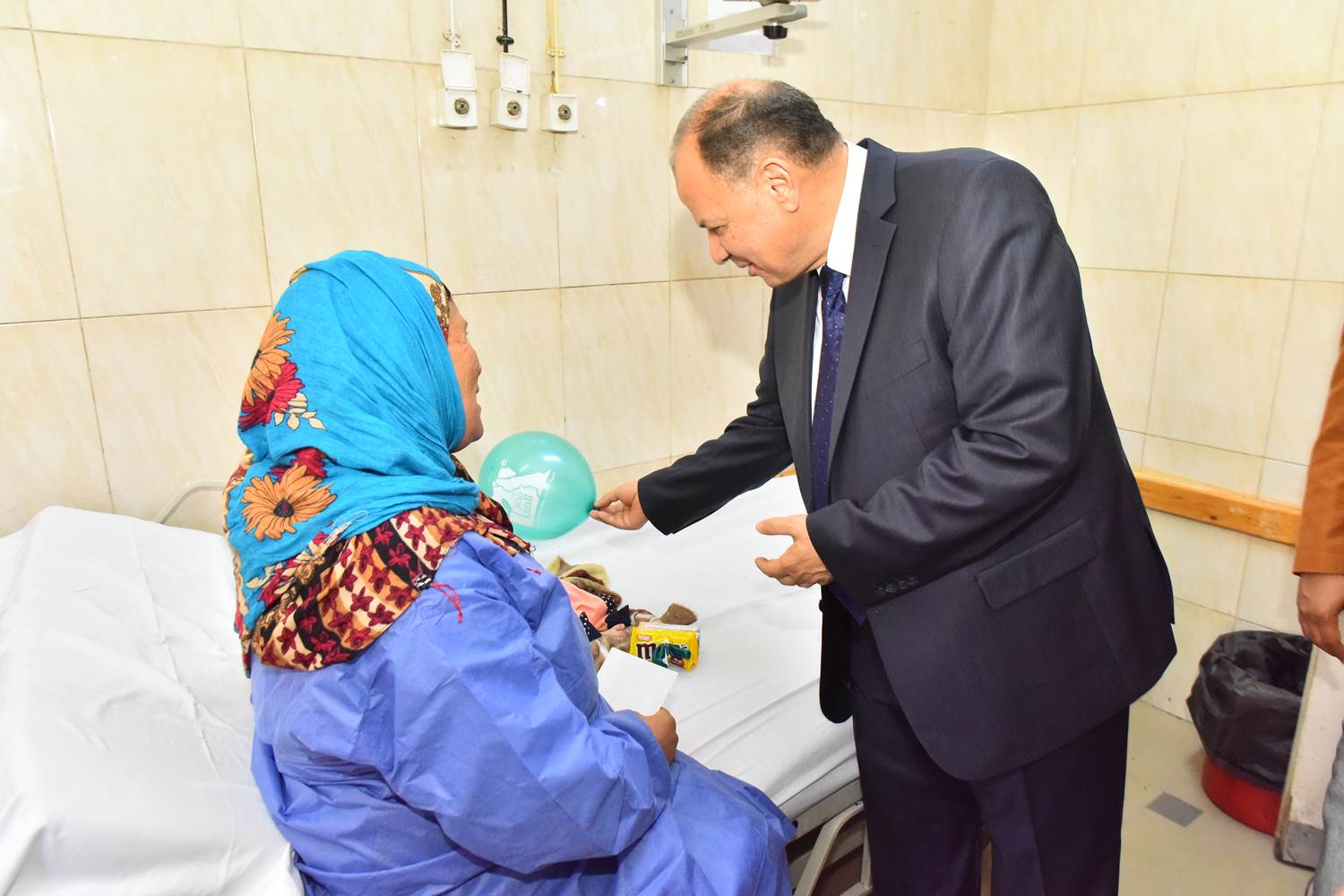 محافظ أسيوط يرسم البسمة على وجوه المرضى في أول أيام العيد (صور)