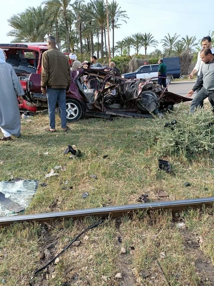 وفاة 4 أشخاص من أسرة واحدة.. الصور الأولى لضحايا حادث تصادم سيارتين بالبحيرة