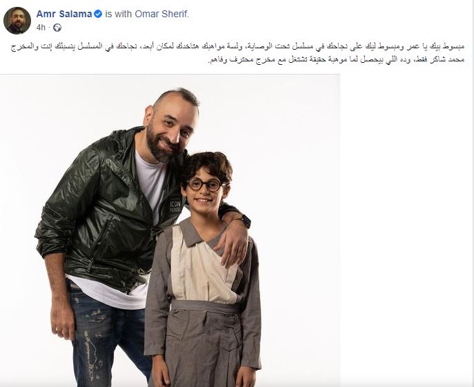 وكتب عمرو سلامة، قائلًا :"مبسوط بيك يا عمر ومبسوط ليك على نجاحك في مسلسل تحت الوصاية، ولسة مواهبك هتاخدك لمكان أبعد، نجاحك في المسلسل ينسبلك إنت والمخرج محمد شاكر فقط، وده اللي بيحصل لما موهبة حقيقة تشتغل مع مخرج محترف وفاهم".
