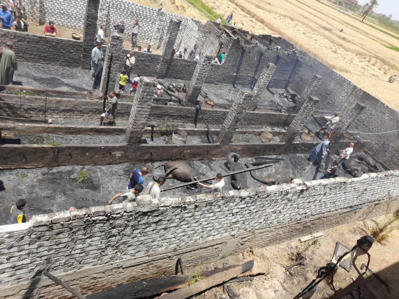 وأسفر الحريق عن نفوق 10 جمال و 6 بقرات، وتحرر محضر بالواقعة وأخطرت الجهات المختصة لتتولى التحقيقات والتي كلفت وحدة المباحث بالتحري حول الواقعة وكشف ملابساتها ، وتشكيل لجنة للوقوف على أسباب الحريق.