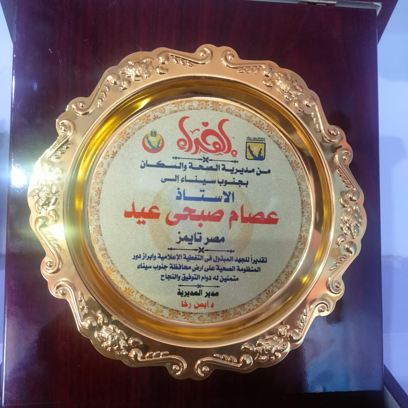 كرم الدكتور أيمن رخا وكيل وزارة الصحة بجنوب سيناء السابق ومدير التأمين الصحى الحالى عصام صبحى مدير مكتب "مصر تايمز" بمحافظة جنوب سيناء .