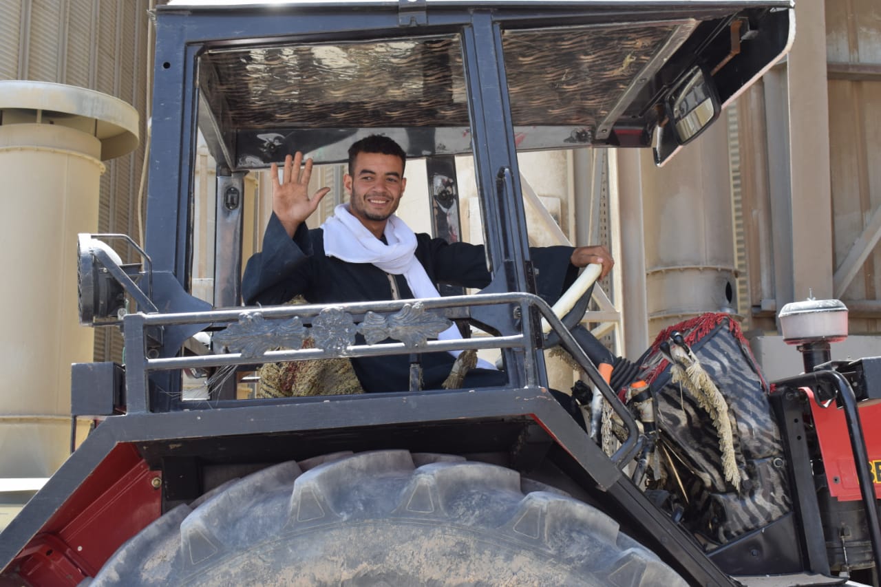 فرحة بين مزارعي المنيا أثناء توريد محصول القمح بأكبر صوامعة