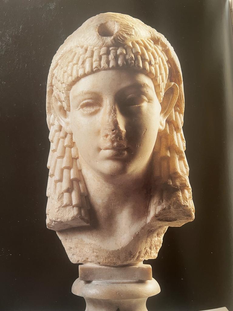 فيما قالت كاثرينا مارتينيز رئيس بعثة الدومينيكان والعاملة بمعبد تابوزيريس ماجنا بغرب بمدينة الإسكندرية أنه على الرغم من وجود أراء متضاربة حول عرقها إلا أنه من المؤكد أنها ولدت في مصر في عام 69 ق.م من أصل مقدوني، لافتة إلى أنه بالرجوع إلى التماثيل والعملات التي خلفتها لنا الملكة تؤكد بما لا يدع مجالا للشك على ملامحها الهيلينستية وهو ما يظهر جليا في التمثال النصفي المصنوع من الرخام والمحفوظ في متحف برلين من القرن الأول قبل الميلاد وتظهر فيه وهي ترتدي إكليلا ملكيا وعينان لوزيتان والأنف مسحوب والشفاه رقيقه، بالإضافة إلى تمثال نصفي آخر محفوظ في الفاتيكان يظهرها بملامح ناعمة، ورأس من الرخام تظهر فيها وهي ترتدي غطاء الرأس، فضلا عن عدد من العملات التي تظهرها بنفس الهيئة الهيلنستية.