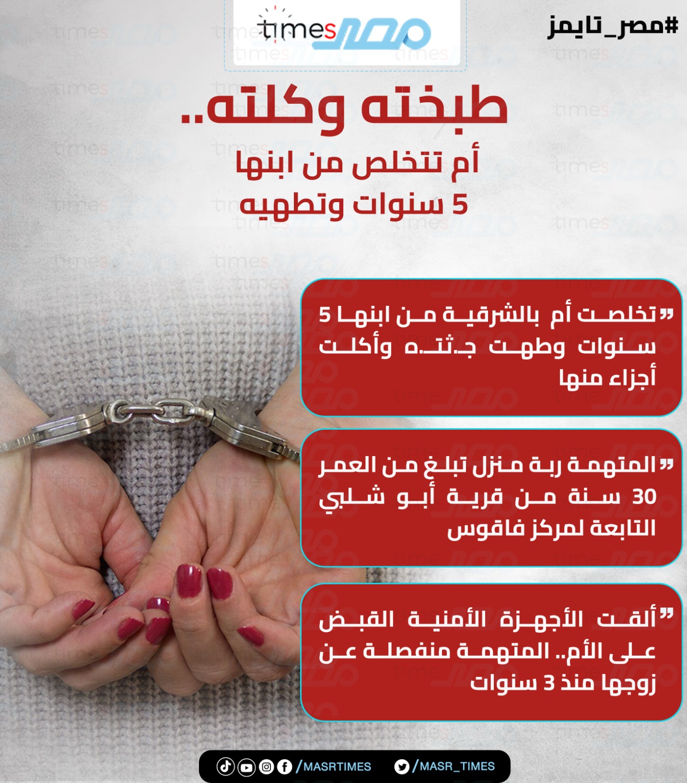 "أم بلا قلب".. القصة الكاملة لواقعة قتل سيدة لطفلها بالشرقية: قطعت جثته بـ"السطور" وطبخت رأسه وأكلتها.. ورجعته بطني تاني عشان خايفه عليه