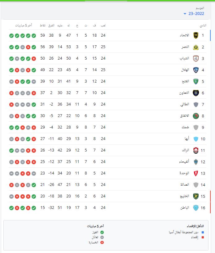 وأصبح جدول ترتيب الدوري السعودي كالتالي.