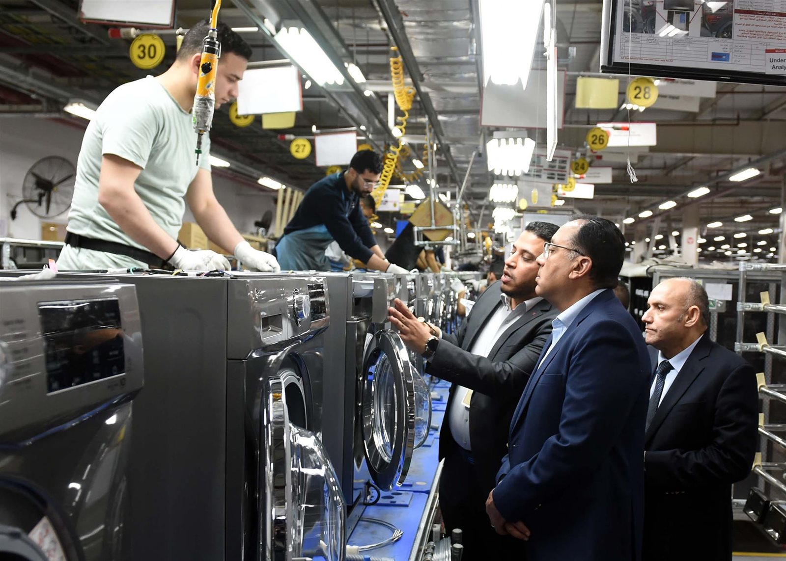 كما تفقد رئيس الوزراء خط انتاج الغسالات، حيث أشار المهندس أيمن ابراهيم إلى وجود تنوع في تصنيع الغسالات حيث تقوم الشركة بإنتاج الغسالات الكهربائية Front door، بمقاسات 7 ، 8، 9، 10 كجم، والغسالات الكهربائية Top Load، بمقاسات 10، 11، 13 كجم.