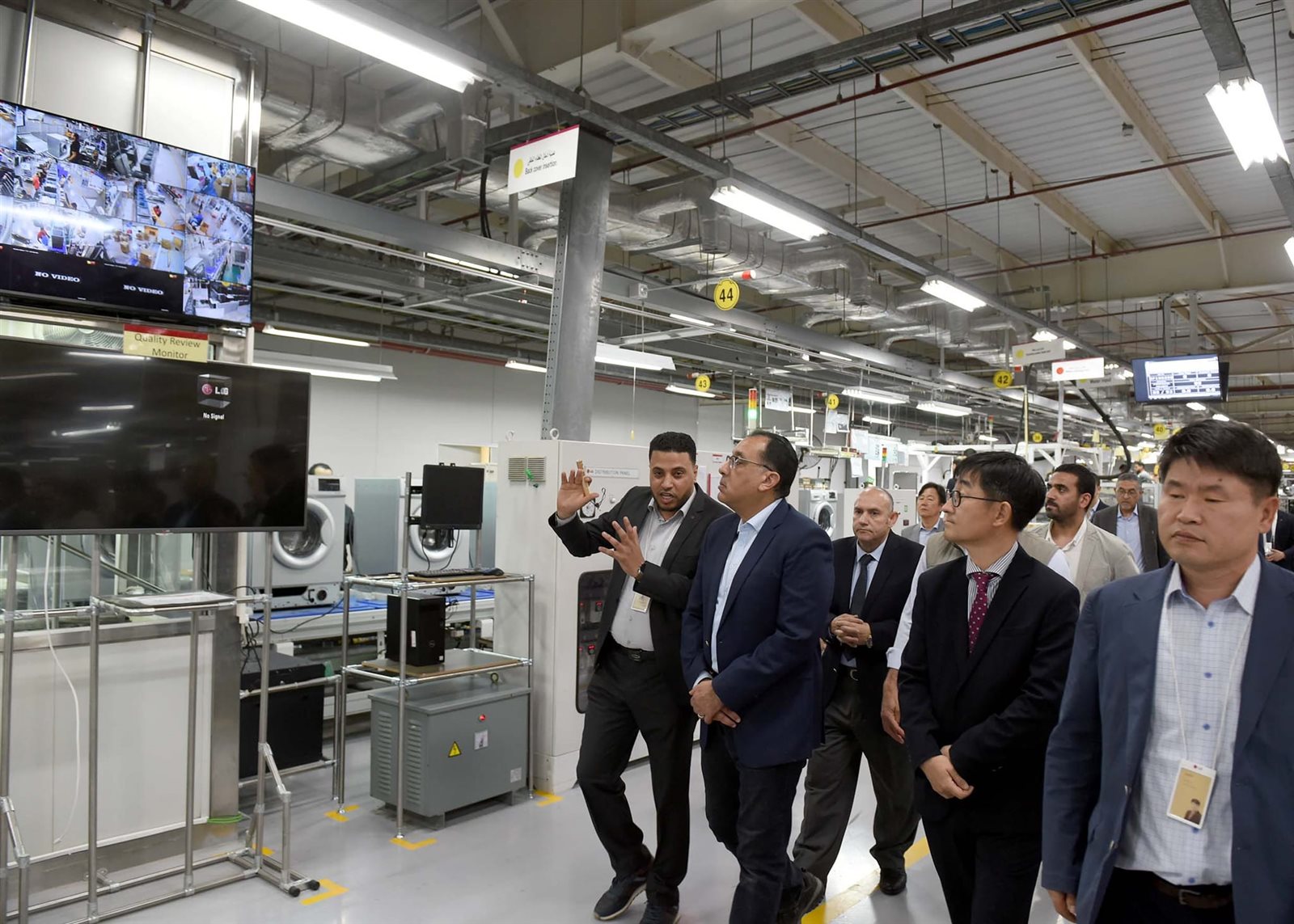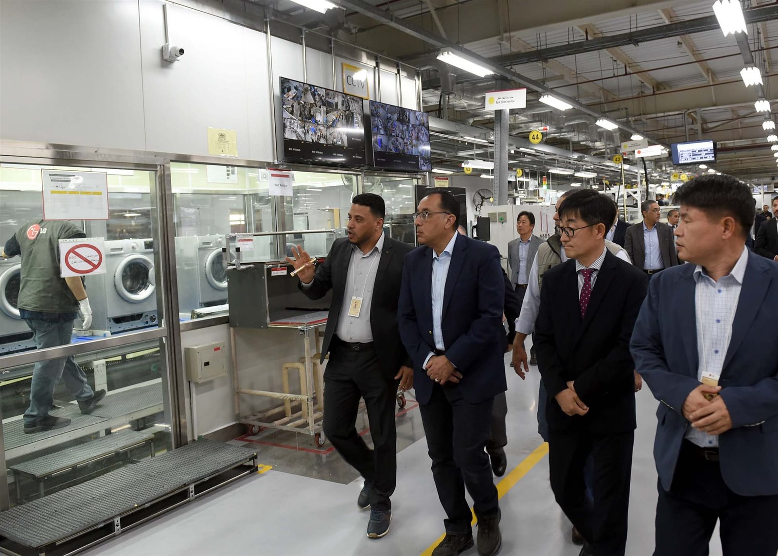قام الدكتور مصطفى مدبولي، رئيس الوزراء، اليوم، بزيارة لعدد من المشروعات الاستثمارية الصناعية بمدينة العاشر من رمضان، استهلها بتفقد مصنع شركة إل جي للإلكترونيات - مصر، يرافقه كل من الدكتور عاصم الجزار، وزير الإسكان والمرافق والمجتمعات العمرانية، وحسام هيبة، الرئيس التنفيذي للهيئة العامة للاستثمار والمناطق الحرة، وبيلي كيم، مدير عام شركة ال جي مصر للإلكترونيات، وعلاء عمر، الرئيس الإقليمي لشركة إل جي للإلكترونيات - مصر.