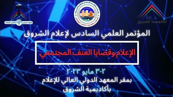 تنطلق فعاليات المؤتمر العلمي السادس للمعهد الدولي العالي للإعلام بأكاديمية الشروق بعنوان "الإعلام وقضايا العنف المجتمعي"، يومي 2- 3 مايو 2023 بمشاركة 36 بحثا لأساتذة وباحثين مصريين وعرب يمثلون عددا كبيرا من الجامعات المصرية والعربية، تحت رعاية الدكتور أيمن عاشور وزير التعليم العالي والبحث العلمي، والدكتورة نيفين القباج وزيرة التضامن الاجتماعي.