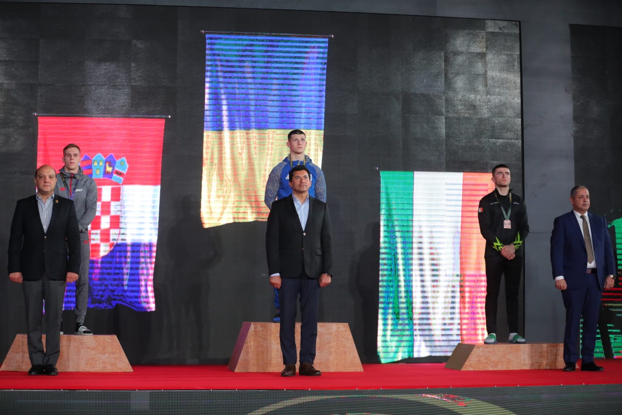 كما قام وزير الشباب والرياضة بتسليم الميداليات للفائزين في ختام منافسات اليوم للجمباز الفتي رجال حيث فاز الاوكراني ILLIA KOVTUN بالميدالية الذهبية، والكرواتي AUREL BENOVIC بالميدالية الفضية، والايرلندي EAMON MONTGOME بالميدالية البرونزية.