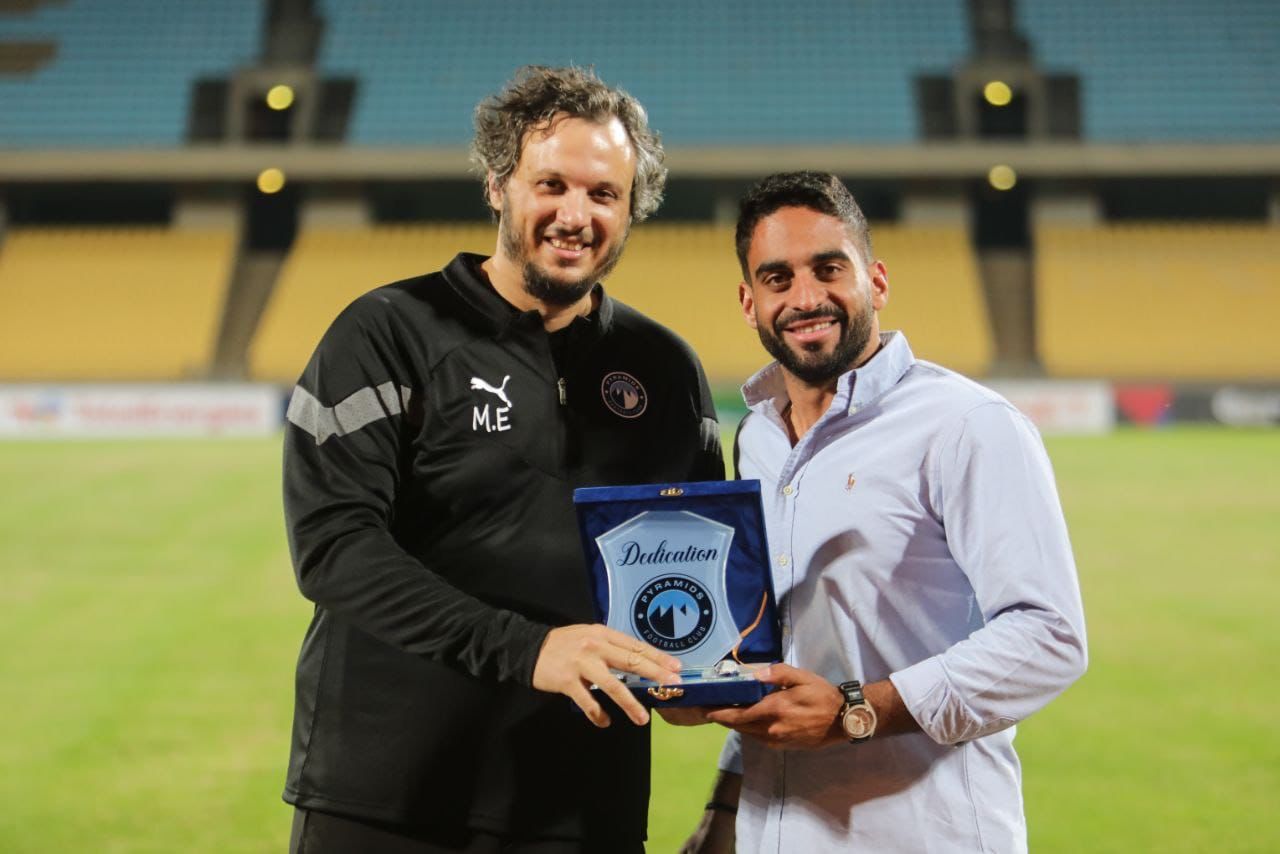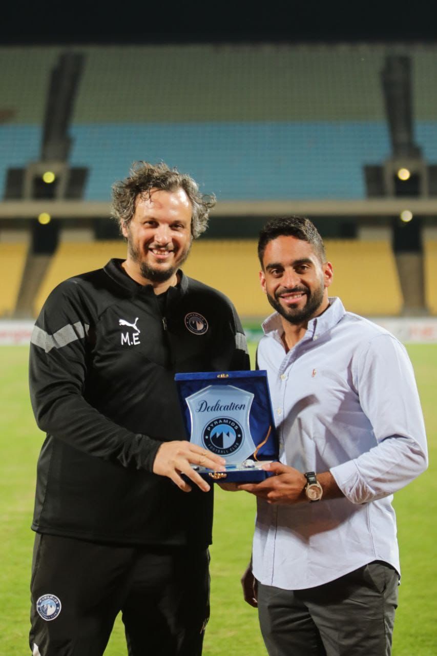 حرص المهندس ممدوح عيد الرئيس التنفيذي لنادي بيراميدز، ورئيس بعثة النادي في جنوب إفريقيا، على إهداء درع النادي للسيد أحمد شديد قنصل سفارة جمهورية مصر العربية في بريتوريا.