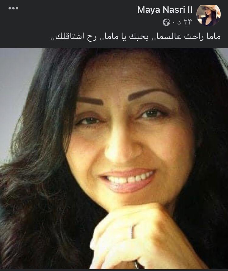 وكتبت مايا نصري، قائلة :"ماما راحت عالسما، بحبك يا ماما، رح اشتاقلك".