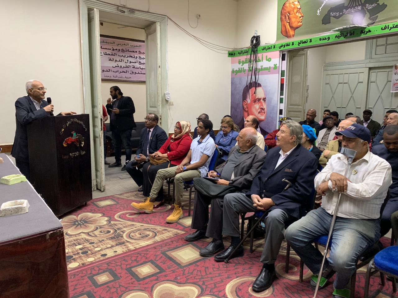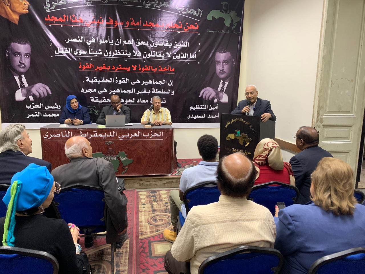 حضر الفاعلية، المهندس محمد النمر رئيس الحزب وحسام جمال الدين النائب الاول لرئيس الحزب والمهندس احمد حسين نائب رئيس الحزب واحمد الصعيدي امين التنظيم، وعددا من قيادات الحزب والسادة امناء الامانات الرئيسية، ومن المحاضرين الدكتور عثمان المهدي رئيس حزب الأمة القومي السوداني"بمصر"، واسماء الحسيني مدير تحرير جريدة الاهرام والمتخصصة في الشئون الافريقية، ومن الحضور النائب عاطف المغاوري عضو مجلس النواب و نائب رئيس حزب التجمع، والمناضل كمال شاتيلا رئيس المؤتمر الشعبي الناصري اللبناني، والكاتب الصحفي محمد الشافعي.