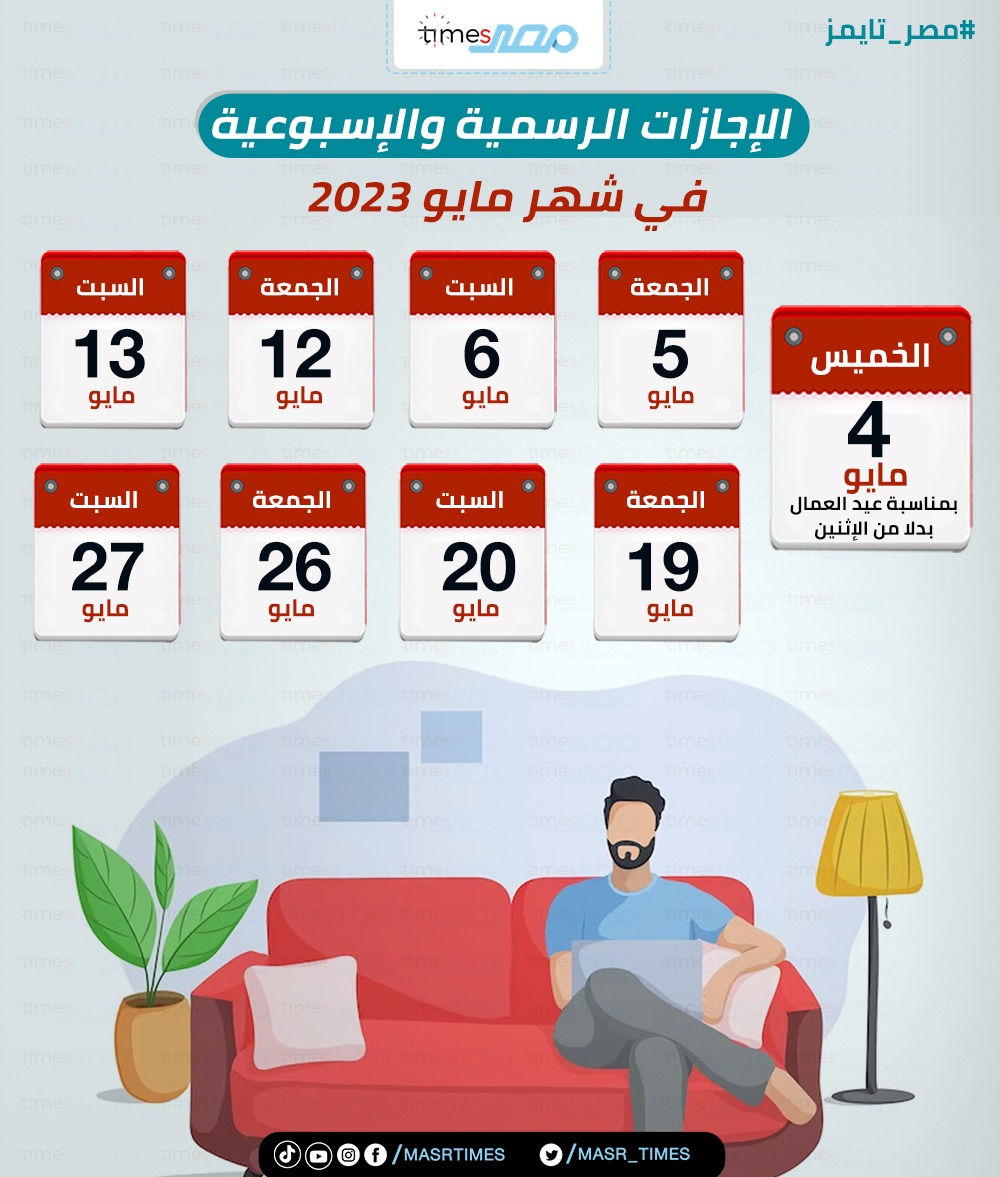 بالإنفوجراف .. الإجازات الرسمية والإسبوعية في شهر مايو 2023