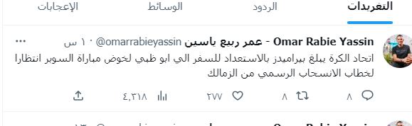 السوبر المصري.. أكد الإعلامي عمر ربيع ياسين، اليوم الثلاثاء، أن اتحاد الكرة برئاسة جمال علام أبلغ نادي بيراميدز بالاستعداد للسفر إلى الإمارات لخوض مباراة كأس السوبر أمام الأهلي، والمقرر إقامتها يوم 5 مايو الجاري.