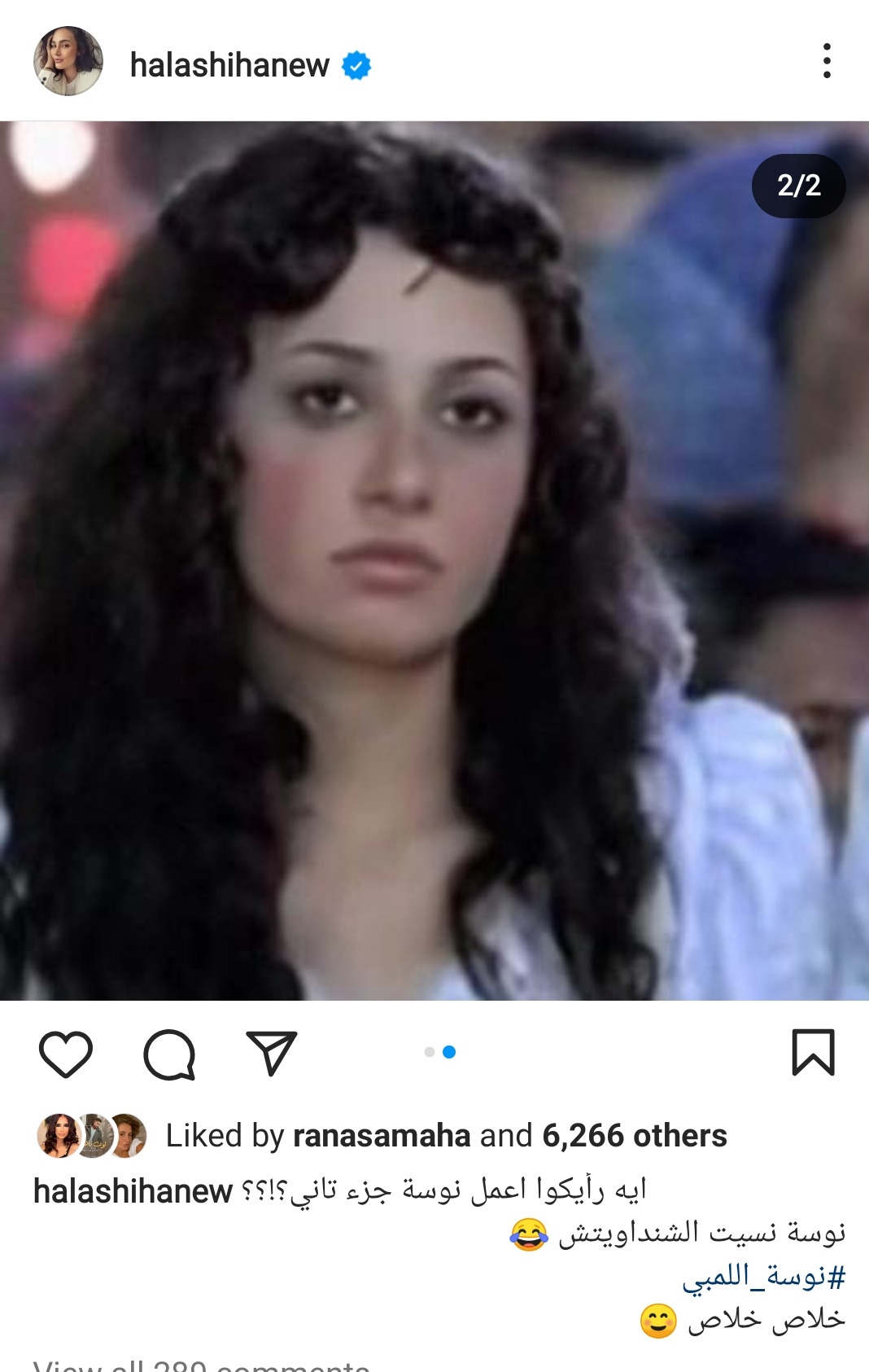 ونشرت حلا شيحة عبر حسابها الشخصي على موقع تبادل الصور والفيديوهات "إنستجرام" صورة لها من فيلم اللمبي، وعلقت عليها قائلة: "ايه رأيكم أعمل نوسة الجزء التاني ؟ نوسة نسيت الشنداويتش"، أحد مشاهد الليمبي مع نجم الكوميديا محمد سعد..