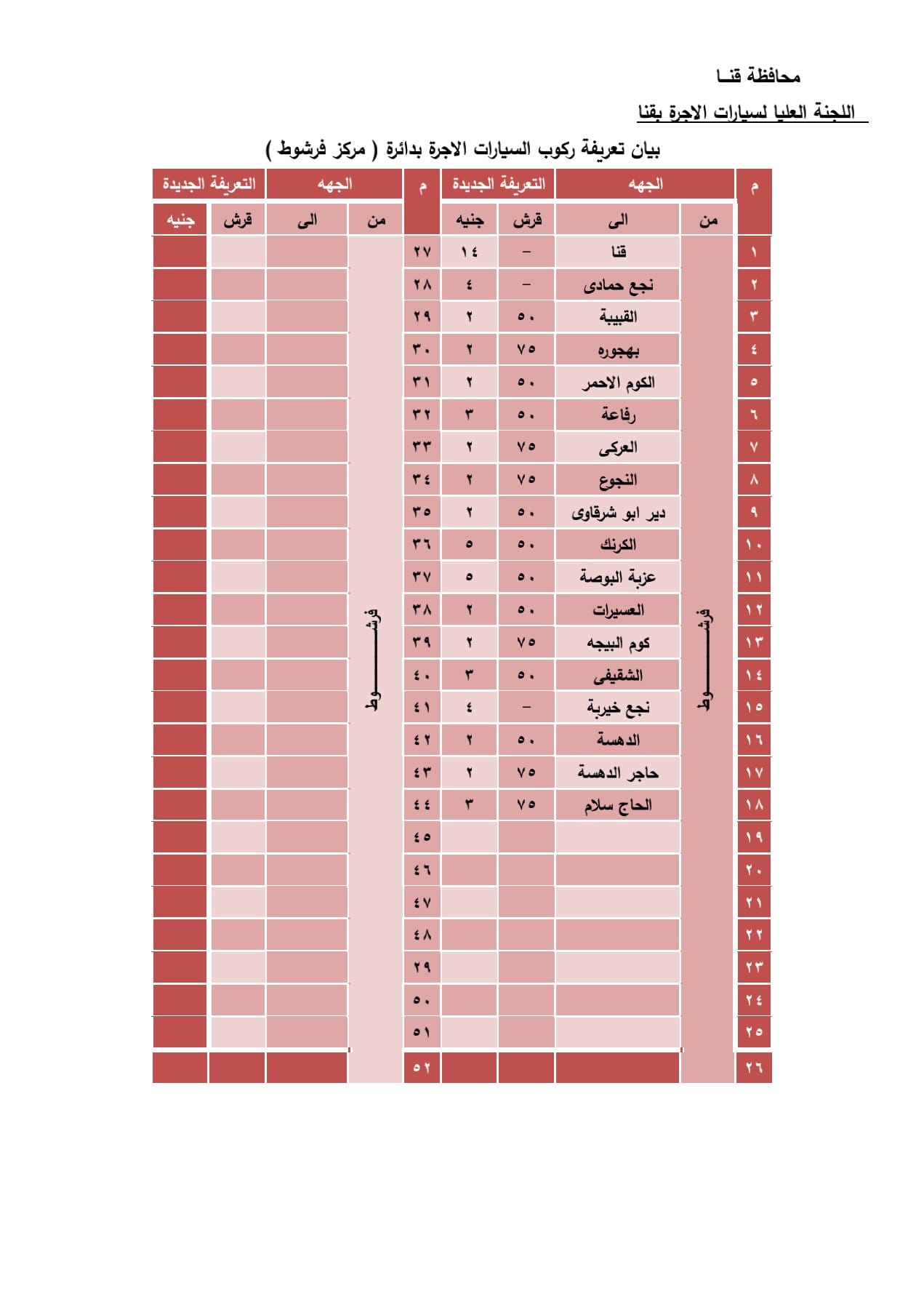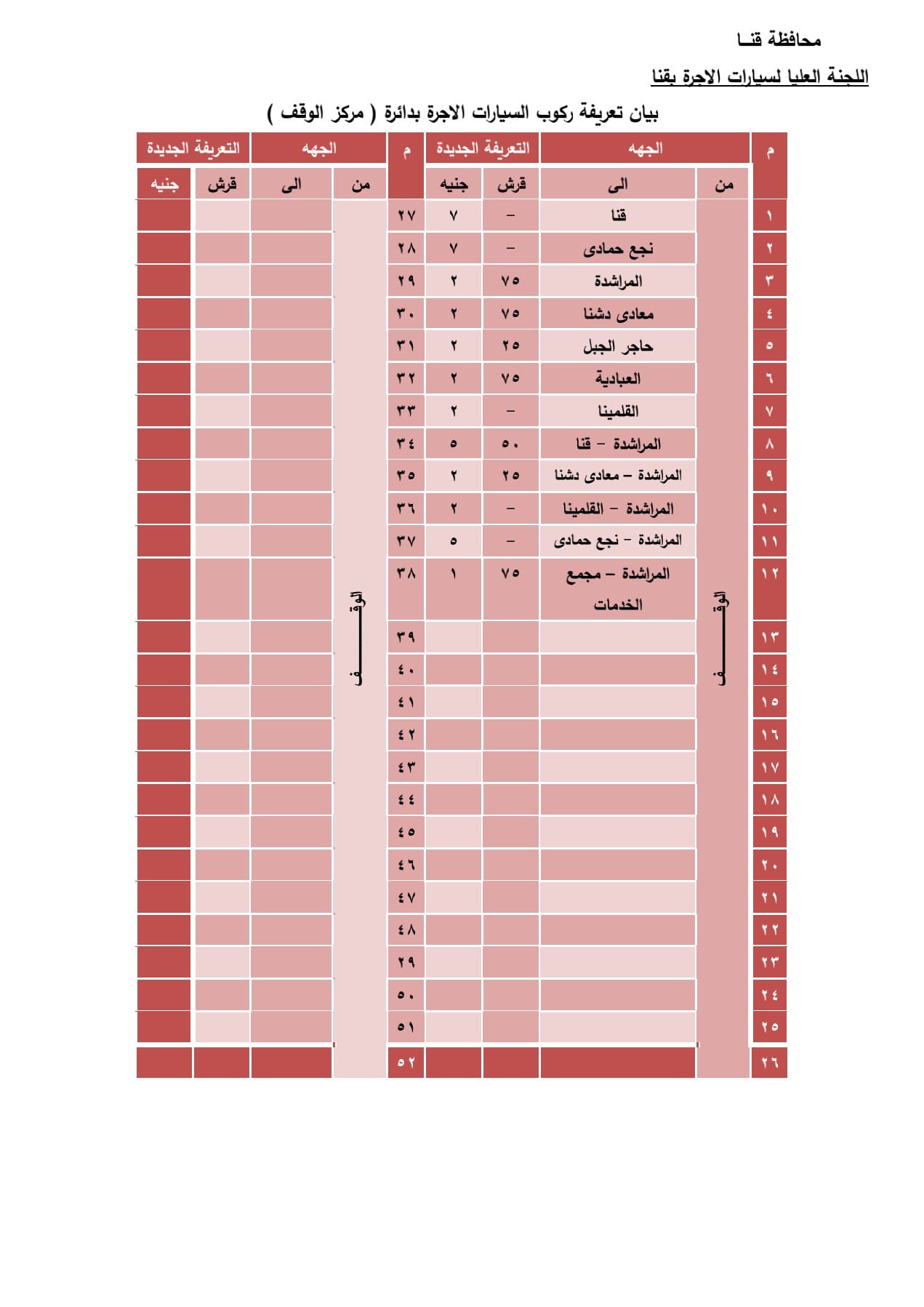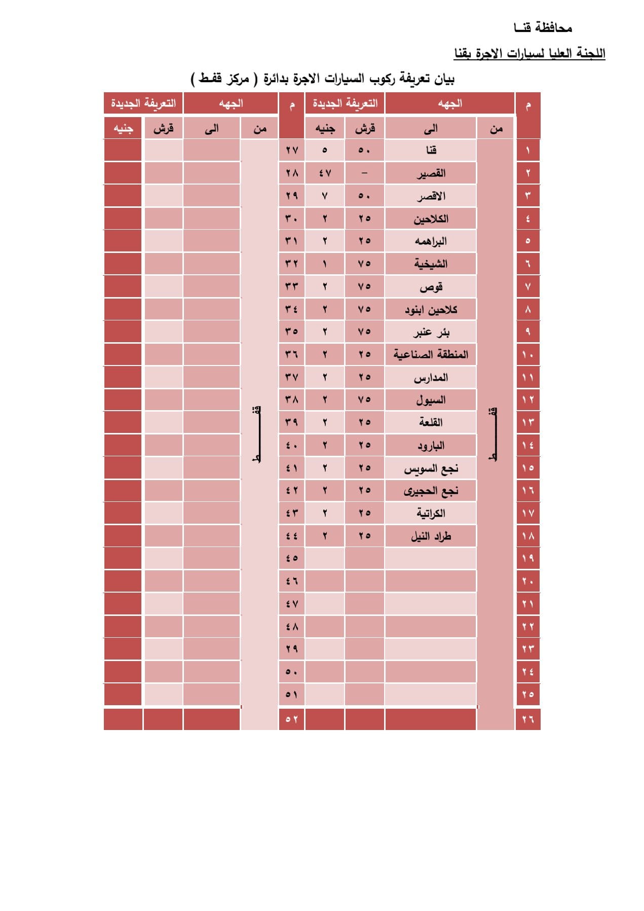 محافظ قنا يعلن تعريفة الركوب الجديدة عقب تحريك سعر السولار