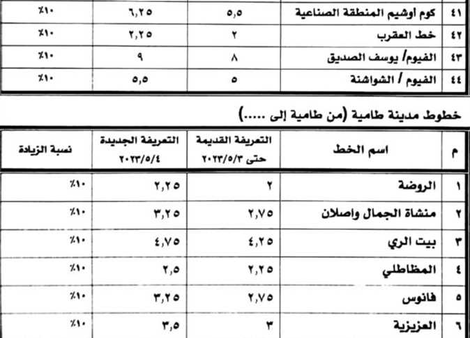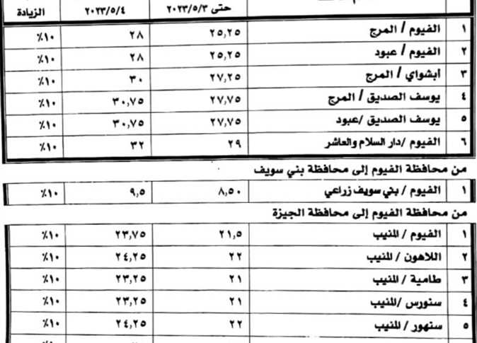 وقال محافظ الفيوم إن اللجنة التي تم تشكيلها لتعديل التعريفة، قد وضعت في اعتبارها مسافة كل خط سير، وعدد الرحلات، تحقيقًا للعدالة، كما تم التنسيق مع المحافظات المجاورة التي ترتبط مع المحافظة بخطوط سير، لضمان توحيد التعريفة.