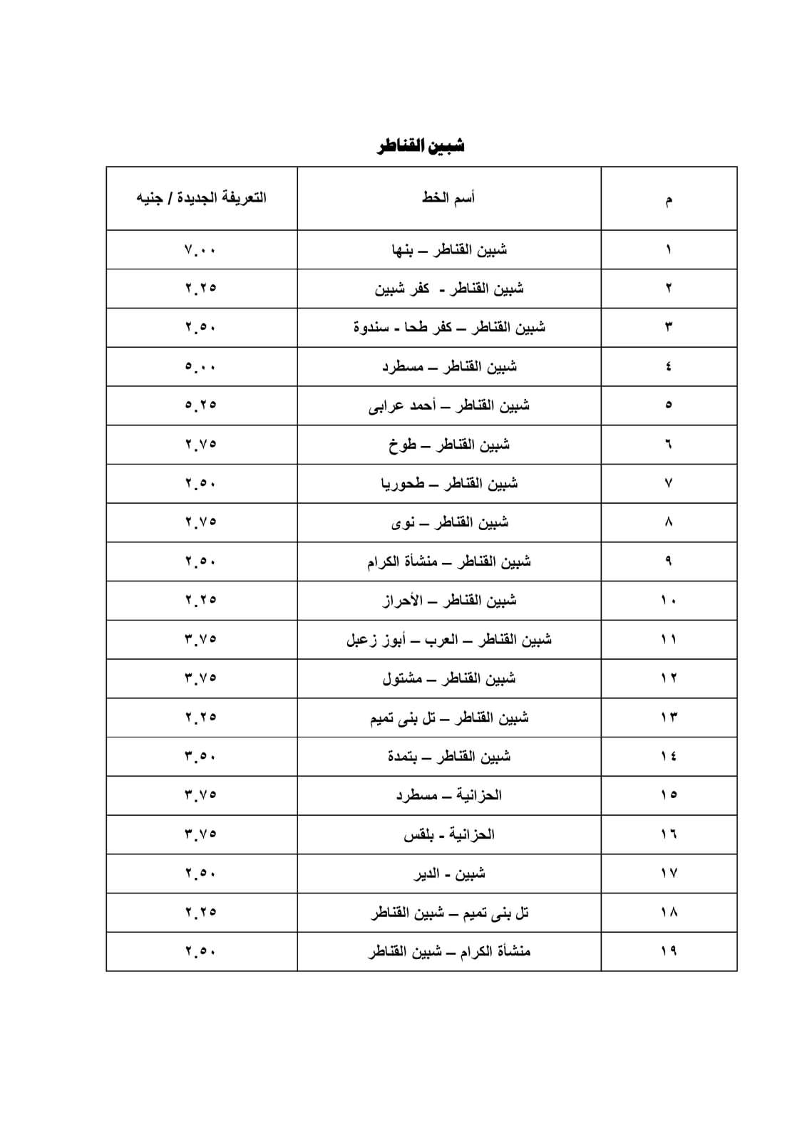 أصدر اليوم، عبد الحميد الهجان محافظ القليوبية، قرار رقم 689 لسنة 2023، الخاص بتعديل التعريفة الجديدة والمقررة لركوب سيارات الأجرة والسرفيس بدائرة المحافظة.