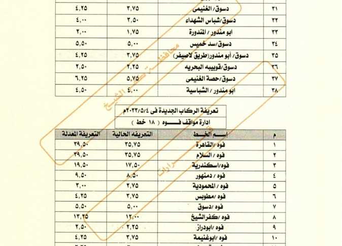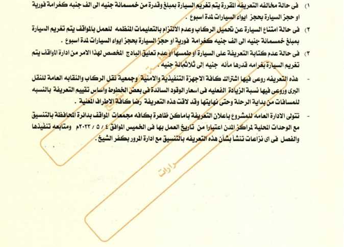 محافظ كفر الشيخ يعلن التعريفة الجديدة لجميع الخطوط داخل وخارج المحافظة