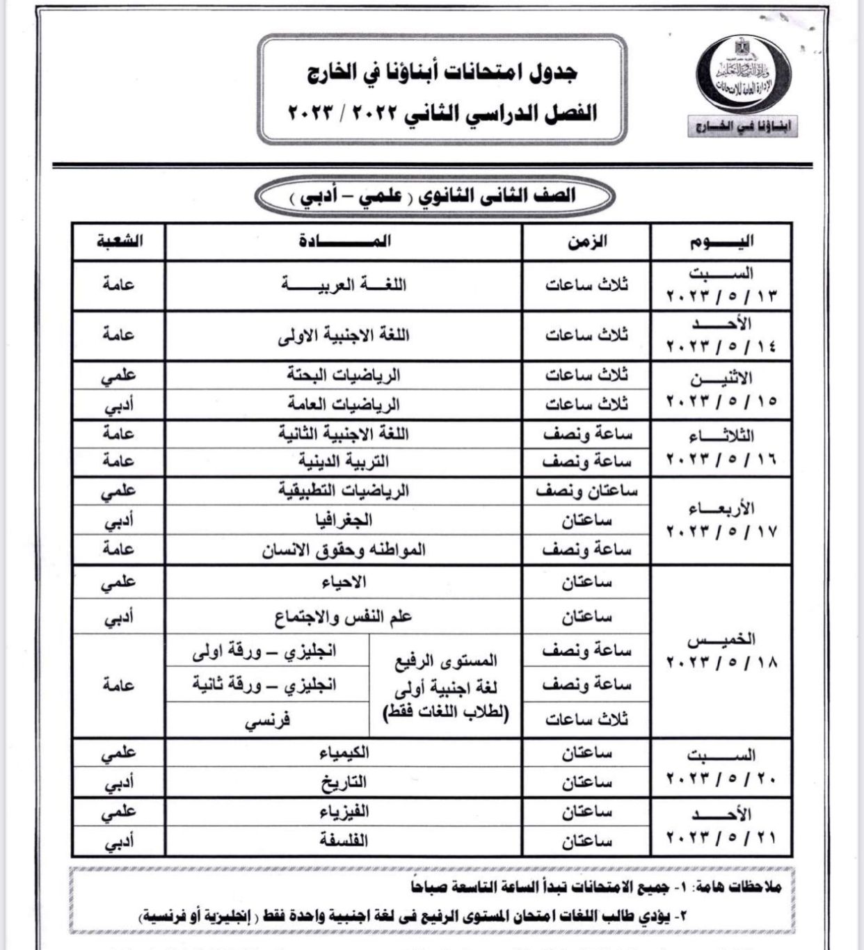 كما تتضمن التعليمات التوجيه بنشر دليل الاستخدام الخاص بتأدية الامتحانات لكل مرحلة على الموقع الرسمي لمنصة "أبناؤنا في الخارج" https://sabroad.emis.gov.eg/، وأن يتاح للطلاب أداء الاختبارات الإلكترونية للفصل الدراسي الثاني بداية من يوم السبت المقبل الموافق 6 مايو 2023 من الساعة 9 صباحاً وحتى الساعة 4 مساءً، وللطلاب المتخلفين عن أداء امتحانات الفصل الدراسي الأول بداية من الساعة 5 مساءً وحتى الساعة 11 مساءً بتوقيت الدولة الذي يؤدي بها الطلاب الامتحانات.