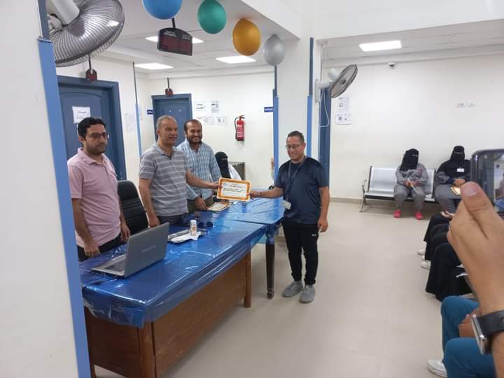 كما قام الدكتور وكيل الوزارة بمشاركة الدكتور هانى جوهر ، مدير مستشفي الطور العام خلال الفعاليات بتوزيع شهادات تقدير للعاملين بالمستشفي تقديراً لجهودهم المبذولة بمناسبة الاحتفال بعيد العمال متمنياً لهم دوام التوفيق .