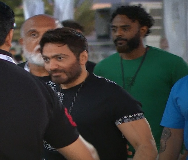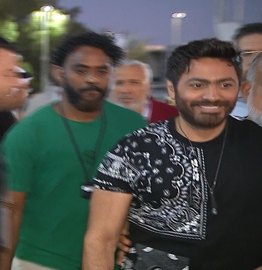 وصل الفنان تامر حسني، ملعب محمد بن زايد، استعدادًا لإحياء حفل مباراة كأس السوبر المصري.