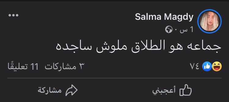 حسن شاكوش.. سخرت سلمى مجدى، طليقة مؤدى المهرجانات الشعبية حسن شاكوش، على واقعة طرده لزوجته، عبر حسابها الشخصي على موقع التواصل الإجتماعي "فيسبوك"، وكتبت سلمى مجدى، قائلة :"جماعه هو الطلاق ملوش ساجده".