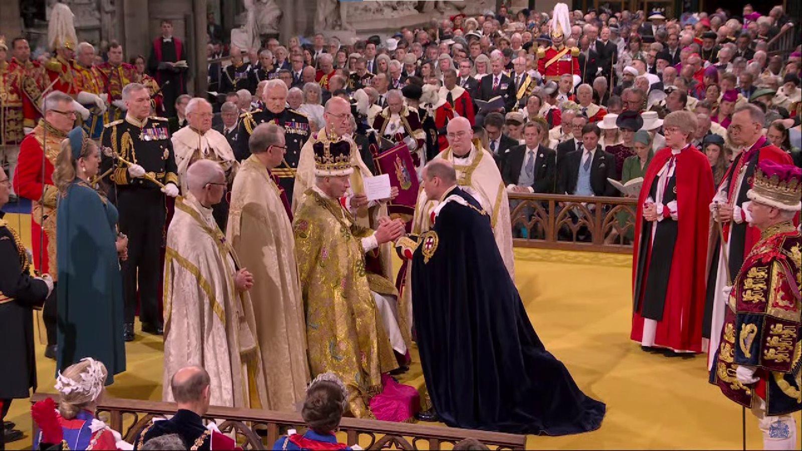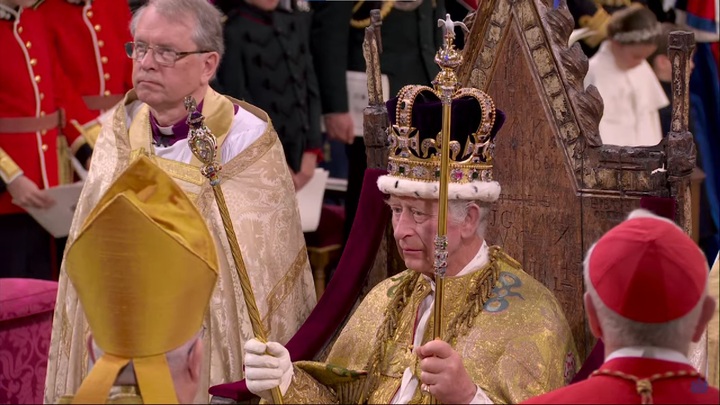 الملك تشارلز.. وتضمن الحفل قراءة الملك وعدد من الشخصيات السياسية والكنسية لمقاطع من الإنجيل تلتها عدة صلوات لاستهلال عهد الملك الجديد.