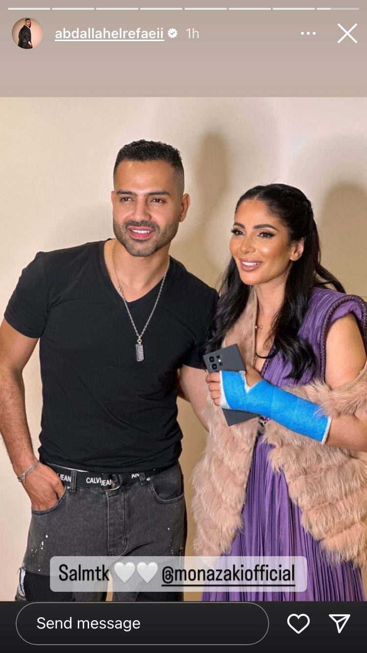 كشف ميكب أرتيست عبد الله الرفاعي، عن إصابة الفنانة منى زكي، بكسر فى يدها، عبر حسابه الشخصي على موقع تبادل الصور والفيديوهات الشهير "إنستجرام".