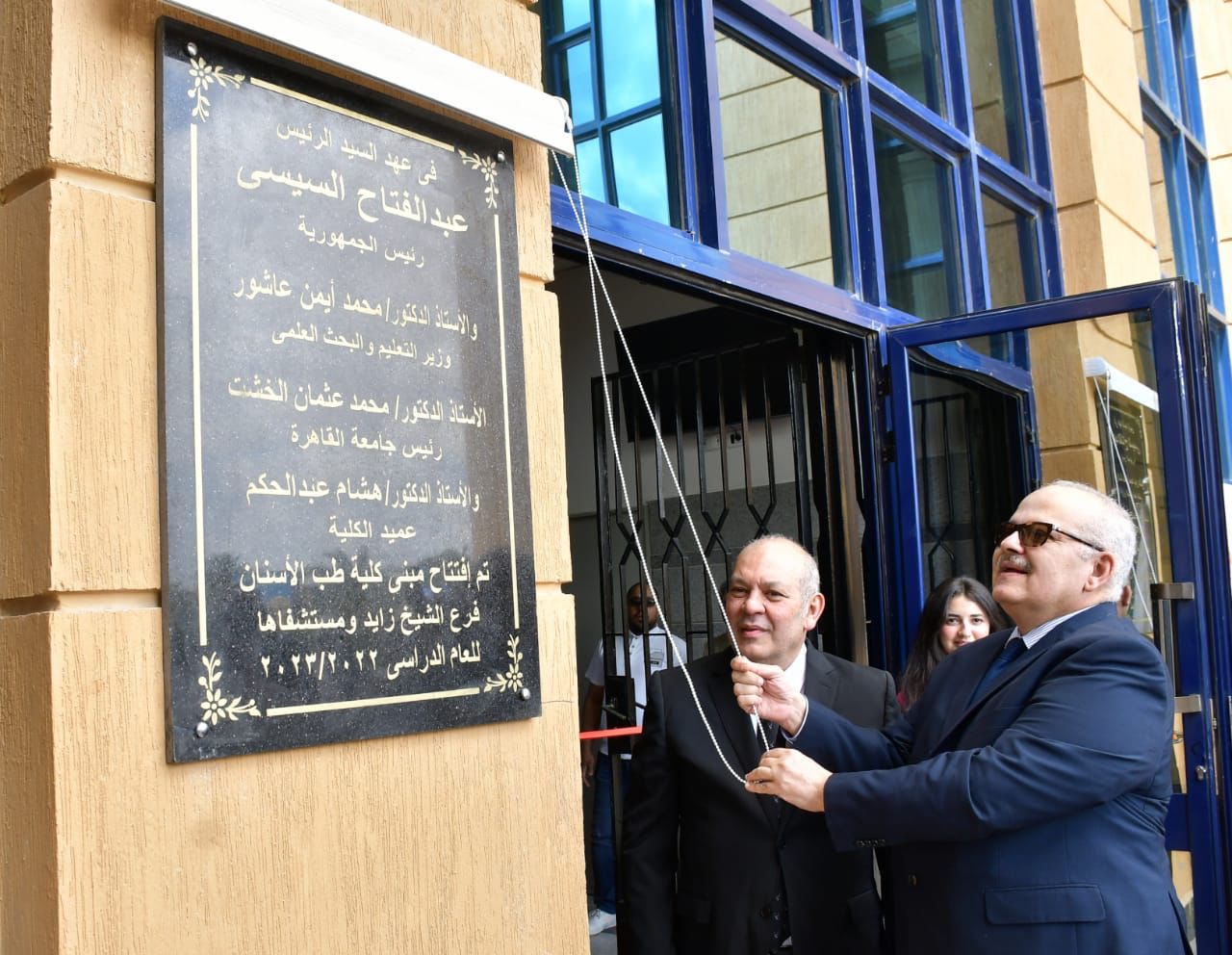 برعاية الدكتور محمد أيمن عاشور وزير التعليم العالي والبحث العلمي، افتتح الدكتور محمد عثمان الخشت رئيس جامعة القاهرة، والدكتور هشام عبد الحكم عميد كلية طب الفم والأسنان، صباح اليوم، مستشفى طب الأسنان التعليمي الجديد وتطويرات مبنى الكلية بفرع الجامعة بالشيخ زايد، وذلك ضمن عمليات التطوير والتحديث الشاملة التي تشهدها مستشفيات وكليات جامعة القاهرة، وذلك بحضور أعضاء مجلس كلية طب الفم والأسنان وامين عام الجامعة ولفيف من أعضاء هيئة التدريس والهيئة المعاونة.