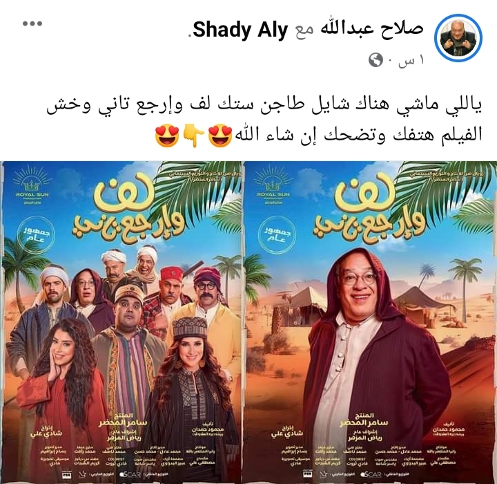ونشر صلاح عبدالله، بوستره الخاص به عبر حسابه الشخصي على موقع التواصل الإجتماعي "فيسبوك"، وعلق عليه قائلًا :" ياللي ماشي هناك شايل طاجن ستك لف وإرجع تاني وخش الفيلم هتفك وتضحك إن شاء الله".
