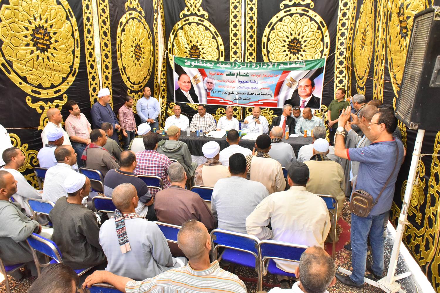 وحرص اللواء عصام سعد على فتح باب الحوار مع المزارعين المتواجدين داخل السرادق المقام بالحقل مؤكدًا لهم أن الدولة تولي اهتمامًا خاصًا بمحصول القمح بإعتباره أحد أهم المحاصيل الاستراتيجية خاصة في ظل الظروف الحالية مما يستلزم منا جميعاُ مواطنين وحكومة التعاون والتضافر لعبور أي أزمات أو التغلب على أية تحديات وهو ما يعتمد أساسًا على وعي ووطنية المزارعين وقيامهم بتوريد أكبر كميات للصوامع والشون الحكومية محذرًا من بيع محصول القمح للتجار لاستخدامه وتحويله علف للحيوانات والماشية وهو ما سندفع ثمنه جميعًا حال تأثر الاحتياطي مؤكدًا أن ملف القمح بمثابة أمن قومي واجب وطني فيجب على الجميع تلبية نداء الوطن داعيًا المولى عز وجل أن يحفظ مصر وشعبها وقيادتها السياسية وأن ينعم عليها بمزيد من الخير الوفير وفي نهاية اللقاء أهدى مجلس إدارة جمعية منفلوط درع للوزير المحافظ ووكيل وزارة الزراعة بمناسبة موسم حصاد محصول القمح 2023 وزيادة انتاجية المحصول هذا العام.