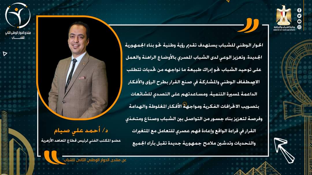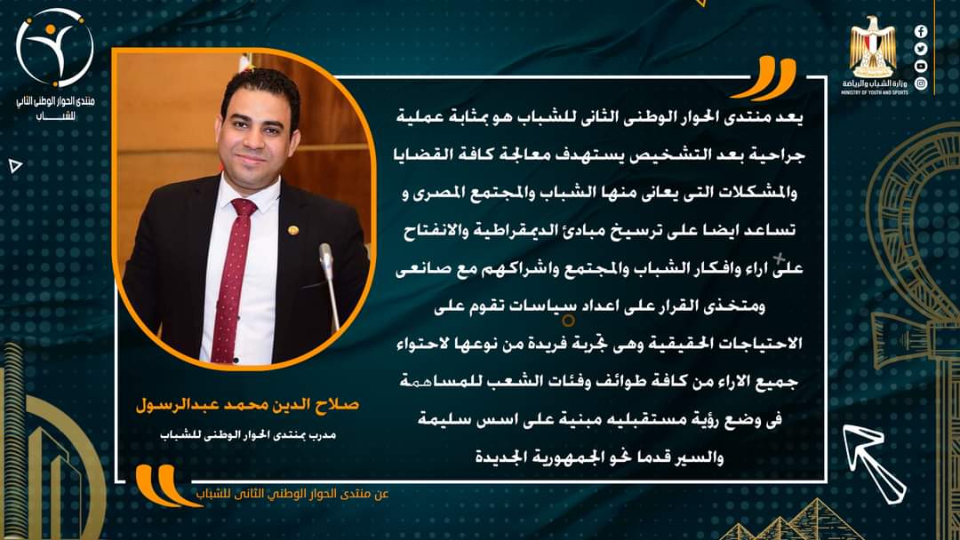 يأتي ذلك في إطار دعوة الرئيس عبدالفتاح السيسي للحوار الوطني ، لتعزيز بناء جسور من التواصل بين الشباب وصناع ومتخذي القرار في قراءة الواقع وإعادة فهم عصري للتعامل مع المتغيرات والتحديات وتدشين ملامح جمهورية جديدة تقبل باراء الجميع.