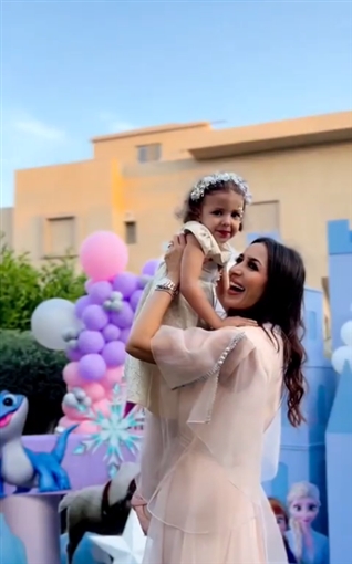 وزينت جنات المكان بأشكال أميرات فيلم Frozen وظهرت مع زوجها يحملان ابنتهما ويغنيان لها، حيث نشرت الصور عبر حسابها الرسمي بموقع التواصل الاجتماعي “انستجرام”.
