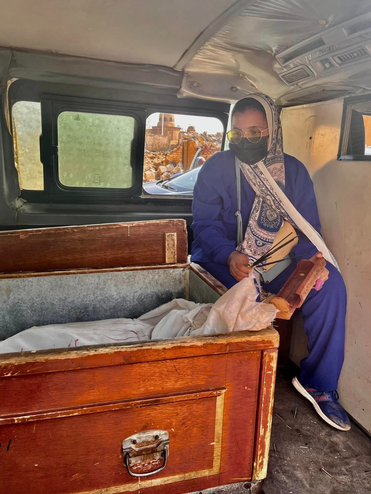 و قالت ،" نجيب أكفان و عربيات دفن موتي و صناديق و نخرج جثث من أكثر من 100 سنة من سنة 1930 ! و نحملهم في عربيات و نروح بيهم مدافن في أكتوبر في طريق الفيوم ! في الصحراء .. بعد ما كنت تقريبًا كل شوية بروح أزور بابا بحكم قرب المكان و بحكم إنه في منطقة حية .. لا هتودوا أهلكم مكان مقطوع بعيد عنكم .. و هتاخدهم عظام ! ( و ده من لطف ربنا بينا ) لإن كان في جثث ناس ثانية لسه متحللتش تمامًا !! متخيلين بشاعة المنظر و الموقف ! متخيلين يعني إيه أطلع جثة شخص مرة ثانية ! اروح أدفن تاني ! أجدد حزن تاني ولو إنه أصلا الحزن ما انتهاش ولا قل واحد في المية حتي ! أخرج أبويا من قبره ثاني !!!